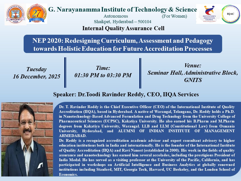 NEP Session 2025 by Dr. Toodi Ravinder Reddy @ GNIT Hyd.